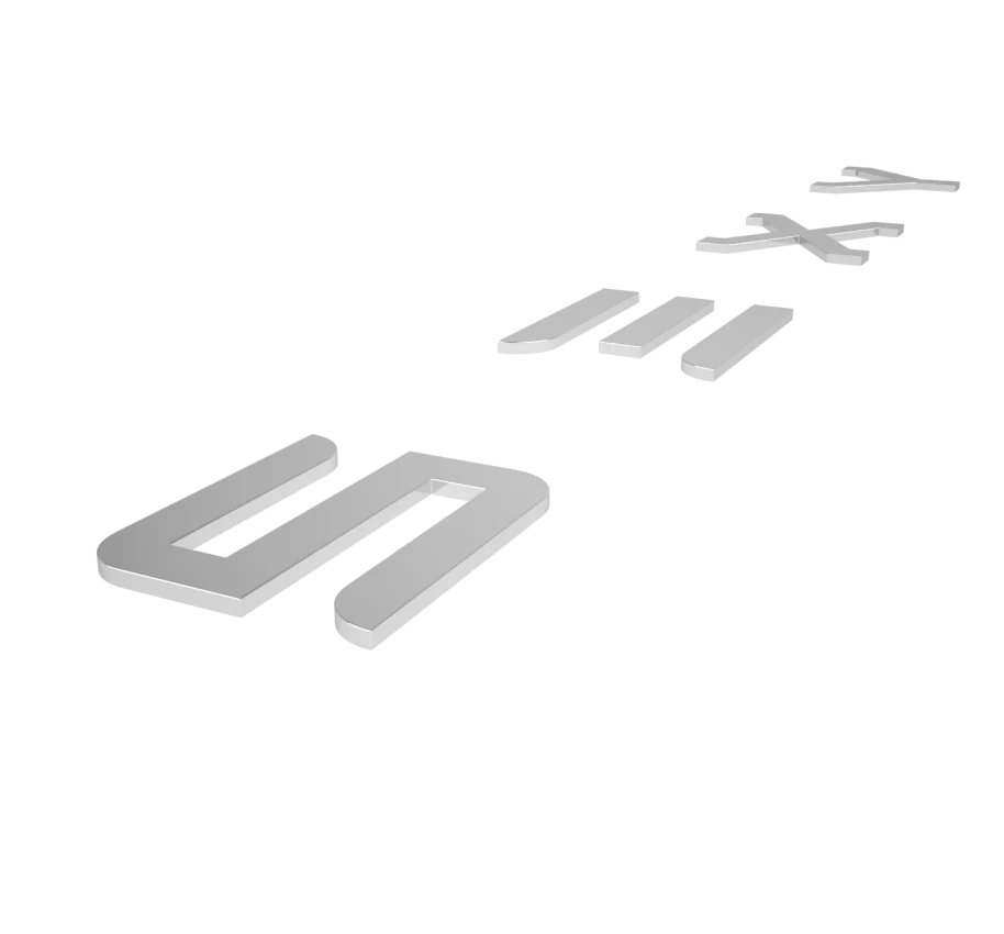 Each letter is 24mm long, 19mm high, and 2mm thick